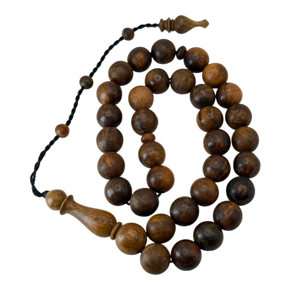 سبحة فاخرة مصنوعة من خشب الصندل الطبيعي بدرجة اندرووتر، وهي من أرقى وأجود درجات خشب الصندل المستخدم في البخور وتقطير دهن الصندل.